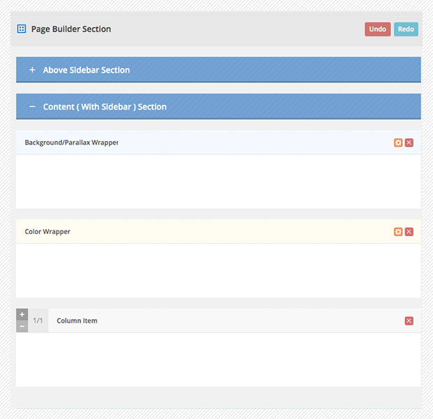 You can have full width parallax or specific color section easily with page builder. This feature allow you to have stunning parallax scroll image and you can also have many custom value such as parallax multiplier to make it slower or faster. You can also assign custom skin that is created in admin panel to parallax/color section too.